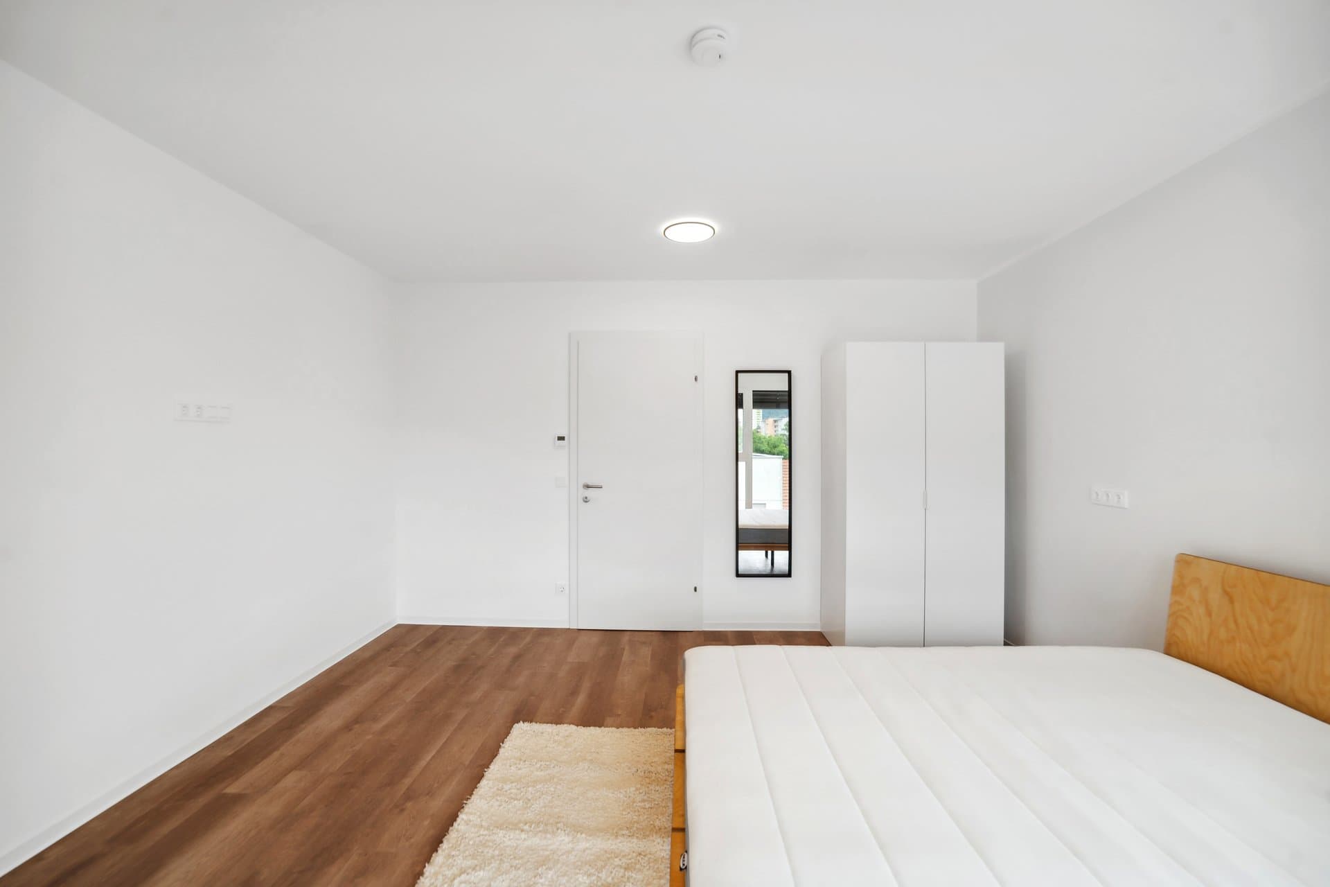 Your room also awaits, fully furnished and clean! You will find a bed + bed linens, a bedside table, and a wardrobe in your room. If you book a room larger than 10m2, you also get a desk and a chair.