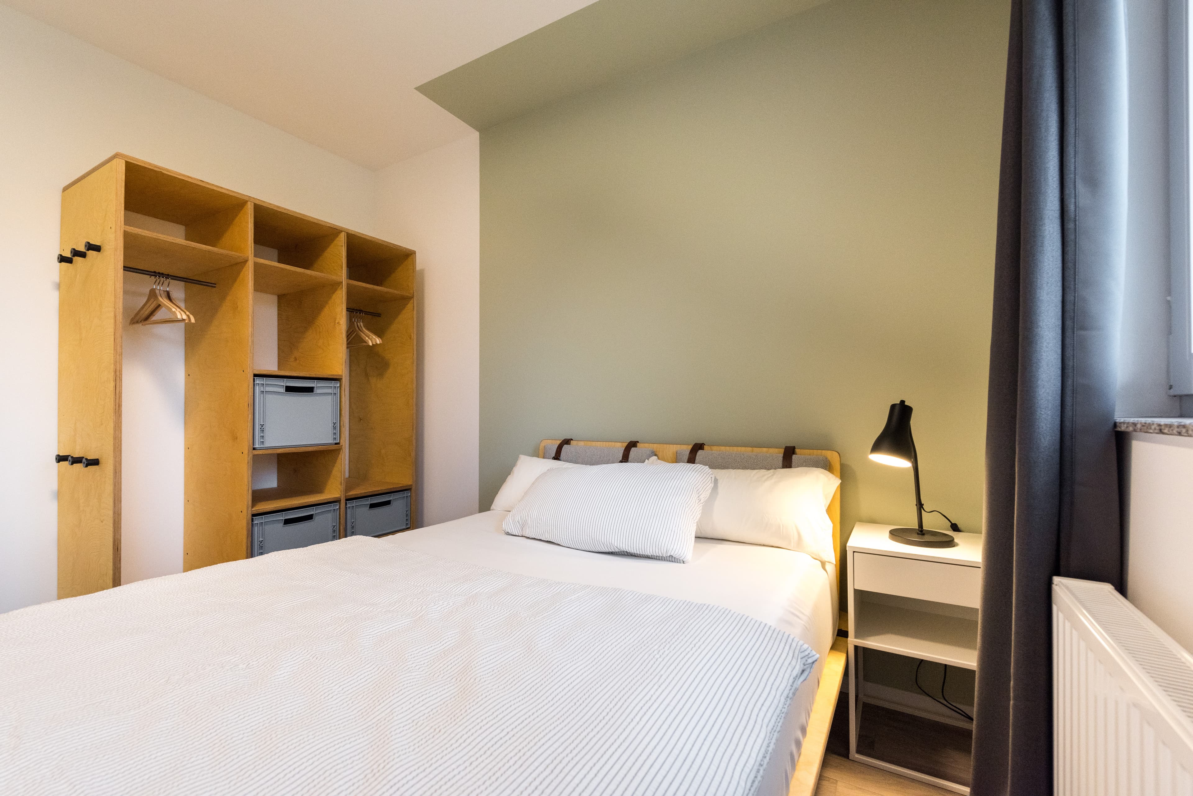 Your room also awaits, fully furnished and clean! You will find a bed + bed linens, a bedside table, and a wardrobe in your room. If you book a room larger than 10m2, you also get a desk and a chair.